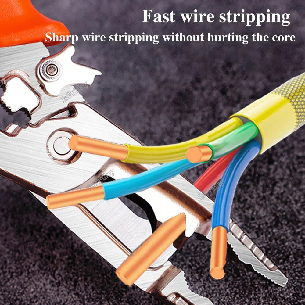 Wird zum Abziehen der Isolierschicht des Drahtkopfes verwendet. Kann Kupferdraht, Aluminiumdraht und Weicheisendraht schneiden. Ist das übliche Werkzeug von Innenelektrikern, Motorreparatur-, Instrumenten- und Geräteelektrikern.