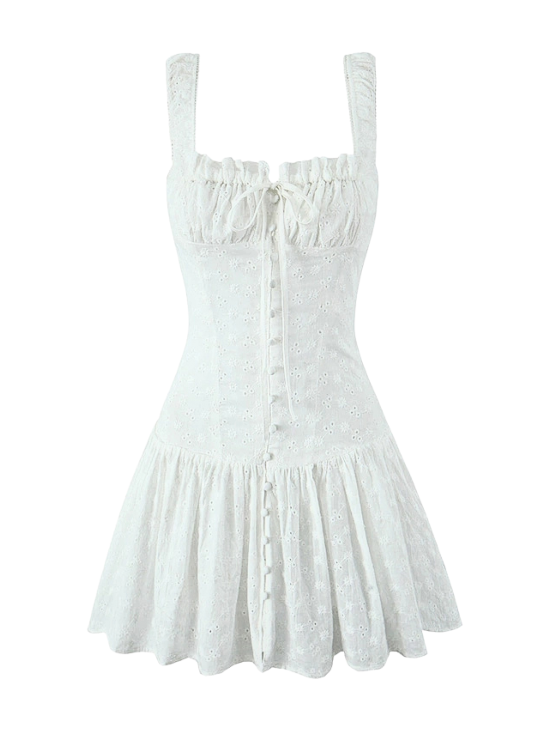 The Alexia Smocked Mini Dress is your new go-to for serving soft girl vibes with a flirty twist. This crisp white mini dress features a smocked bodice that hugs your curves. while the off-shoulder puff sleeves and delicate polka dot texture give it that dreamy. romantic touch. The flared skirt brings playful movement. making it perf for everything from brunch dates to summer parties. Pair it with strappy heels and dainty jewelry for the ultimate angelic aesthetic.