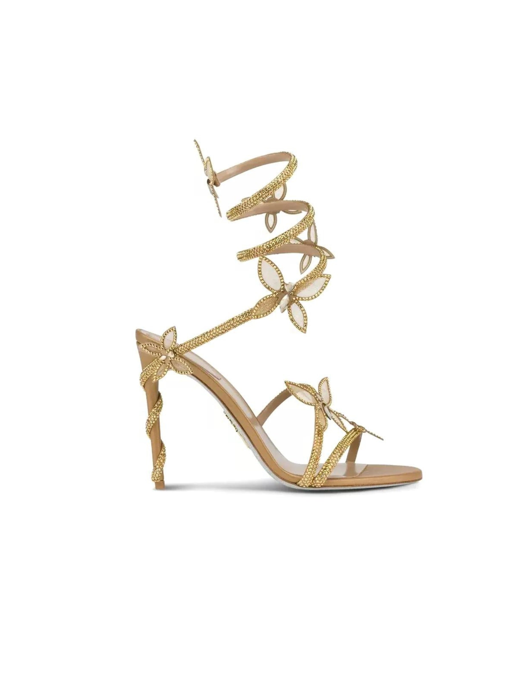 Get ready to flutter into style with the Althea Rhinestone Butterfly Heels. These striking stilettos feature a playful fairy style with sparkling crystal embellishments and cross straps to keep you secure. Made with high-quality sheep leather and an open toe design. these heels are from the Izosu Shoes & Bags Collection.