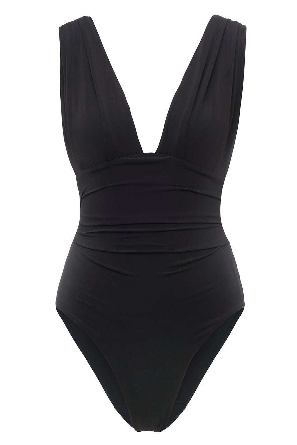 Schwarzer Badeanzug mit tiefem V-Ausschnitt