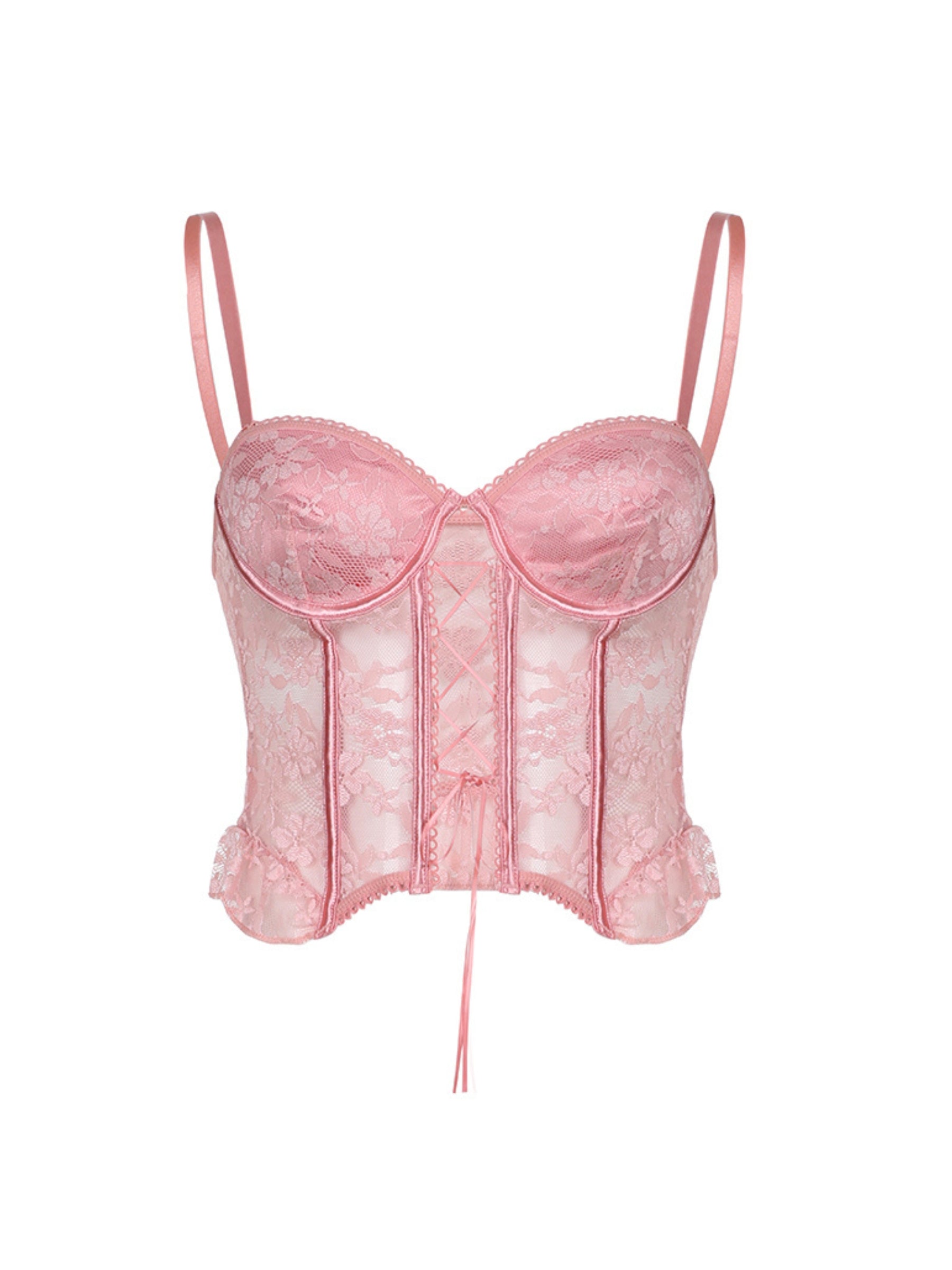 Elevate your good girl style with our Carlotta Lace Corset Top. This slim fitting top features adjustable spaghetti straps and a sultry mesh top. Trust us. this top is perfect for romantic dates and adding a touch of sexiness to any outfit. Part of our Izosu Collection.