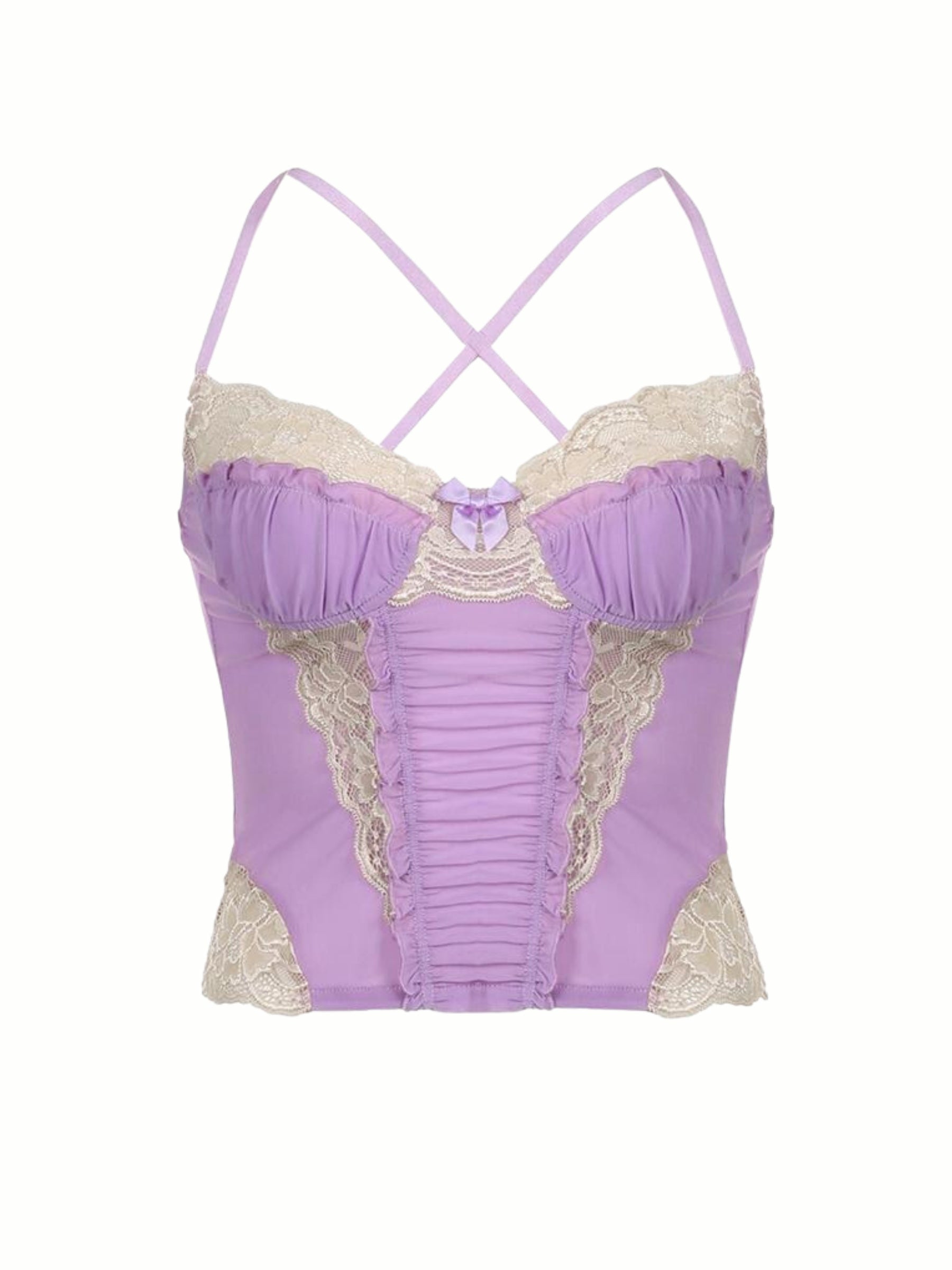 Enjoy your new look with the Erma Lace Corset Top in Purple. This stunning piece is both cute and elegant. with a romantic vintage style made from mesh fabric. and delicately embellished with lace details. Swoonworthy! From Izosu' Modern Romance Collection �you're sure to make heads turn!