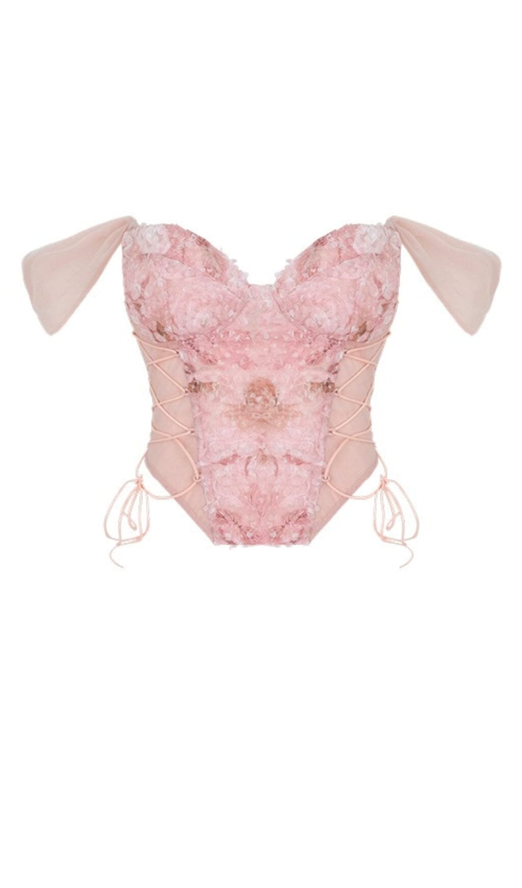 Erleben Sie Romantik und Rebellion mit diesem Korsett-Top mit Blumenstickerei und Schnürung in strahlendem Weiß. Die aufwendige Blumenstickerei und die zierlichen, schulterfreien Rüschen verleihen dem Kleid einen Märchenbuch-Charme, während die Schnürung aus Kunstleder edel wirkt. Kombinieren Sie es mit Jeans oder einem fließenden Maxirock für einen lässigen Boho-Look. Für einen dynamischen Style. Kombinieren Sie es mit dem passenden Minirock und Riemchen-High-Heels.