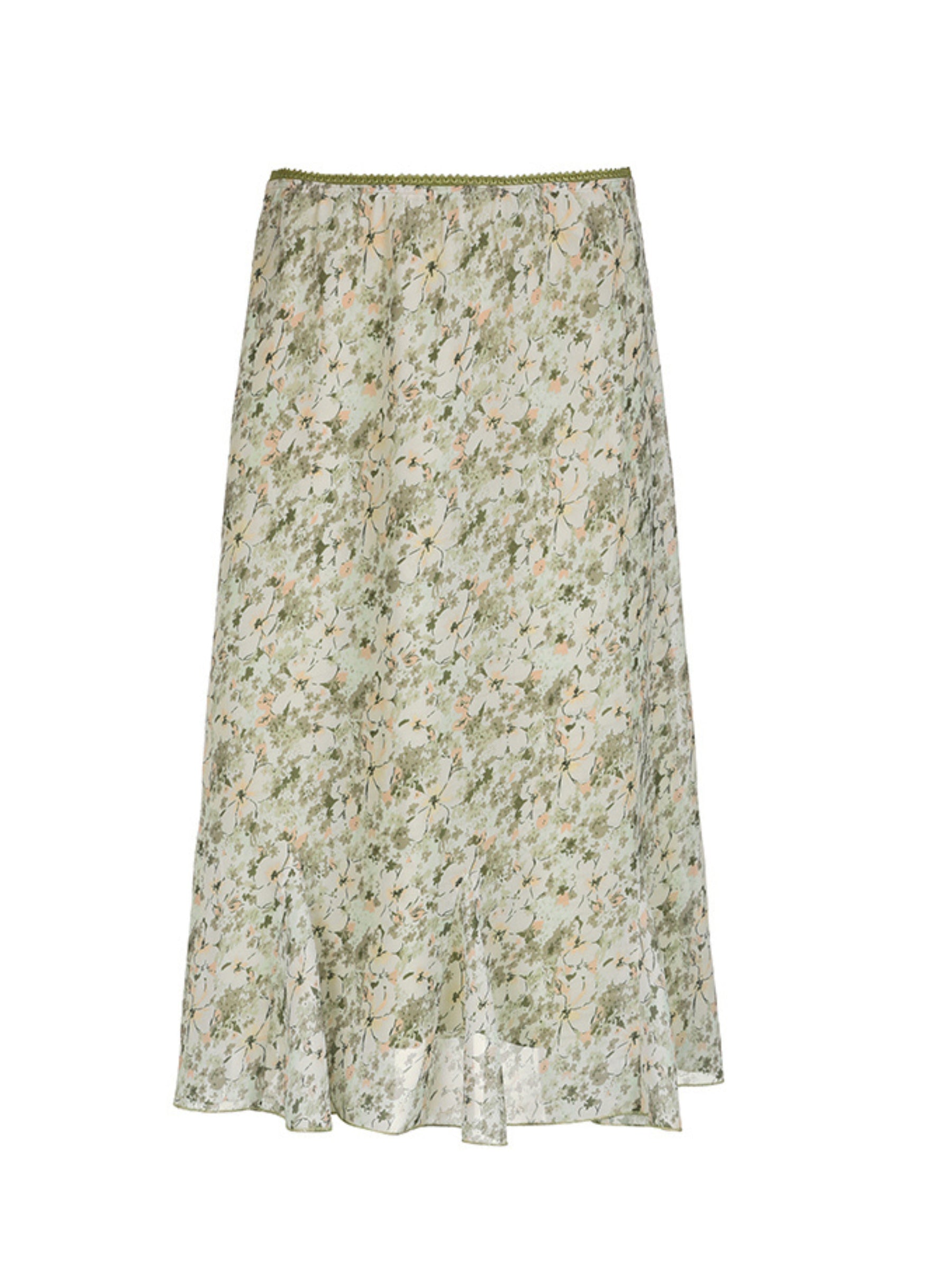 Introducing the Litzy Mesh Floral Midi Skirt! This A-line style in mint green is perfect for channeling fairycore vibes. The low waist and fishtail hem add a retro touch. while the feminine and elegant design brings a touch of sexiness. Part of the Izosu Spring-Summer Collection.