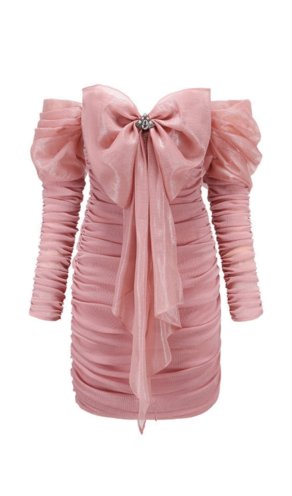 Command the room in the Dress. This beautiful bandeau dress is pleated in all the right places and wrapped in a bow. It's everything you need this season.