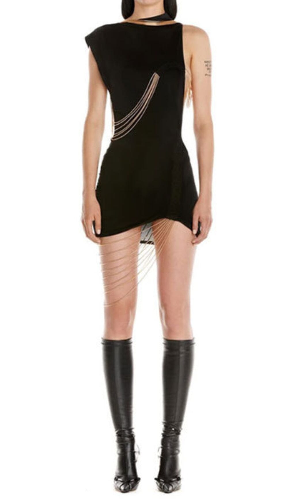 Suchen Sie ein einzigartiges Partykleid, mit dem Sie auffallen? Dann sind Sie mit unserem schwarzen Bandage-Minikleid mit Quasten genau richtig. Dieses Midikleid im neuen Look besticht durch sein schmeichelndes Bandage-Design und auffällige Quastendetails. Es sorgt für einen modernen und stilvollen Look. Hergestellt aus hochwertigen Materialien ist dieses Kleid bequem und langlebig zugleich. Perfekt für jeden besonderen Anlass.