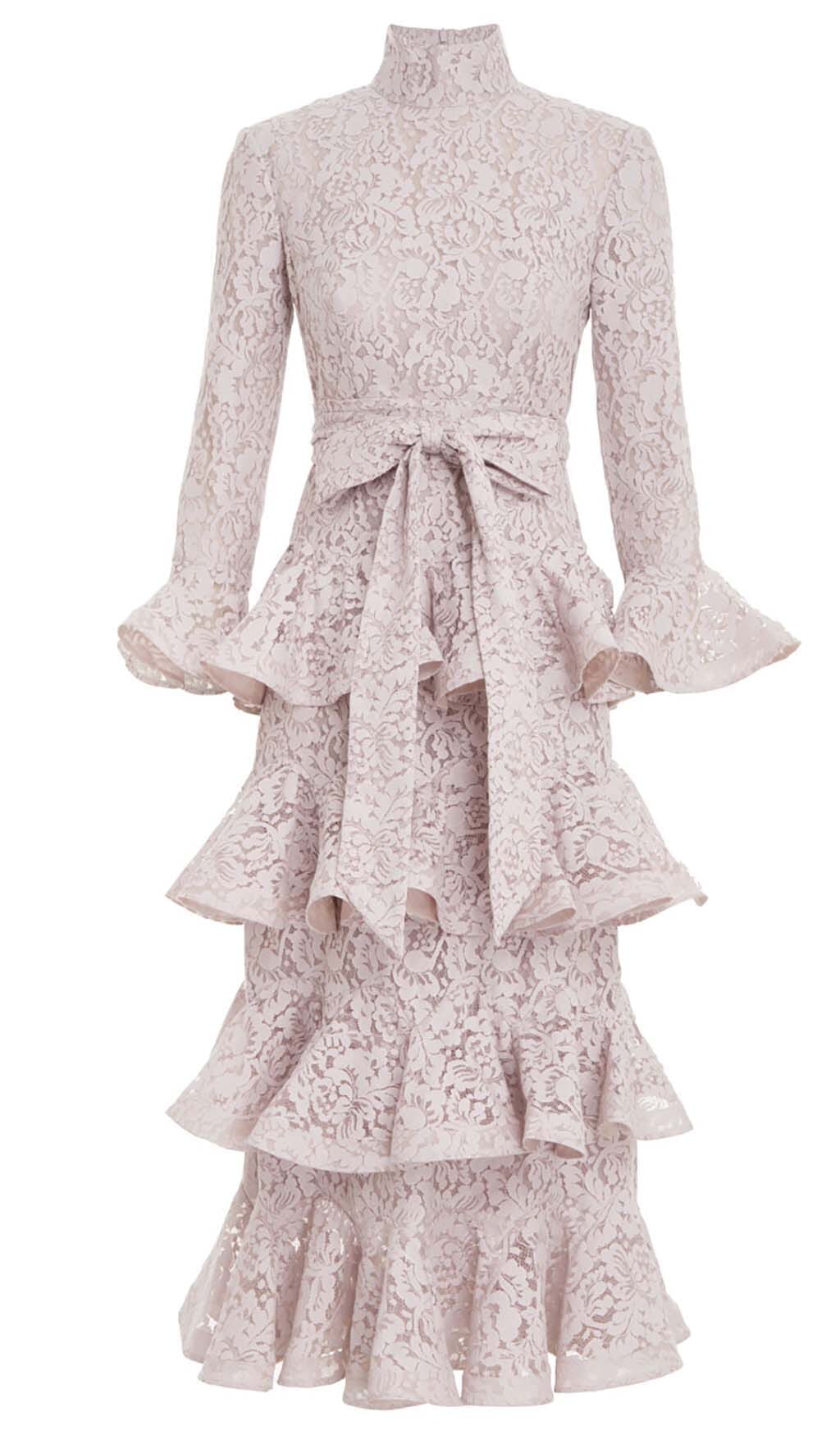 This dress is perfect for a summer party or special event! The tiers of floral lace give it a romantic feel. while the midi length makes it perfect for showing off your favorite shoes.