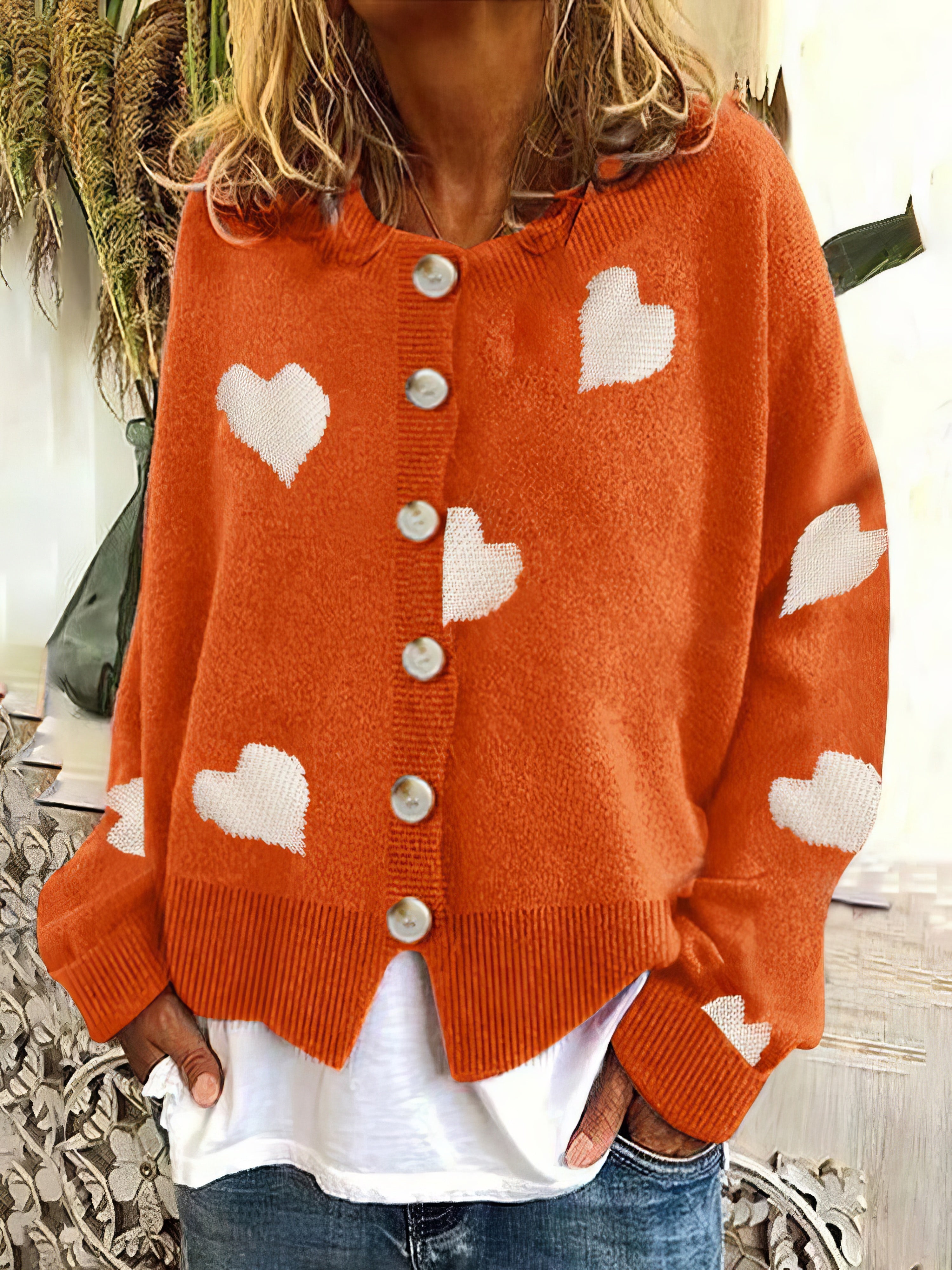 Einreihiger Strickjackenpullover mit Herzmotiv - Bishop - Barcelet - Geschlossen - Scoop - Jewel