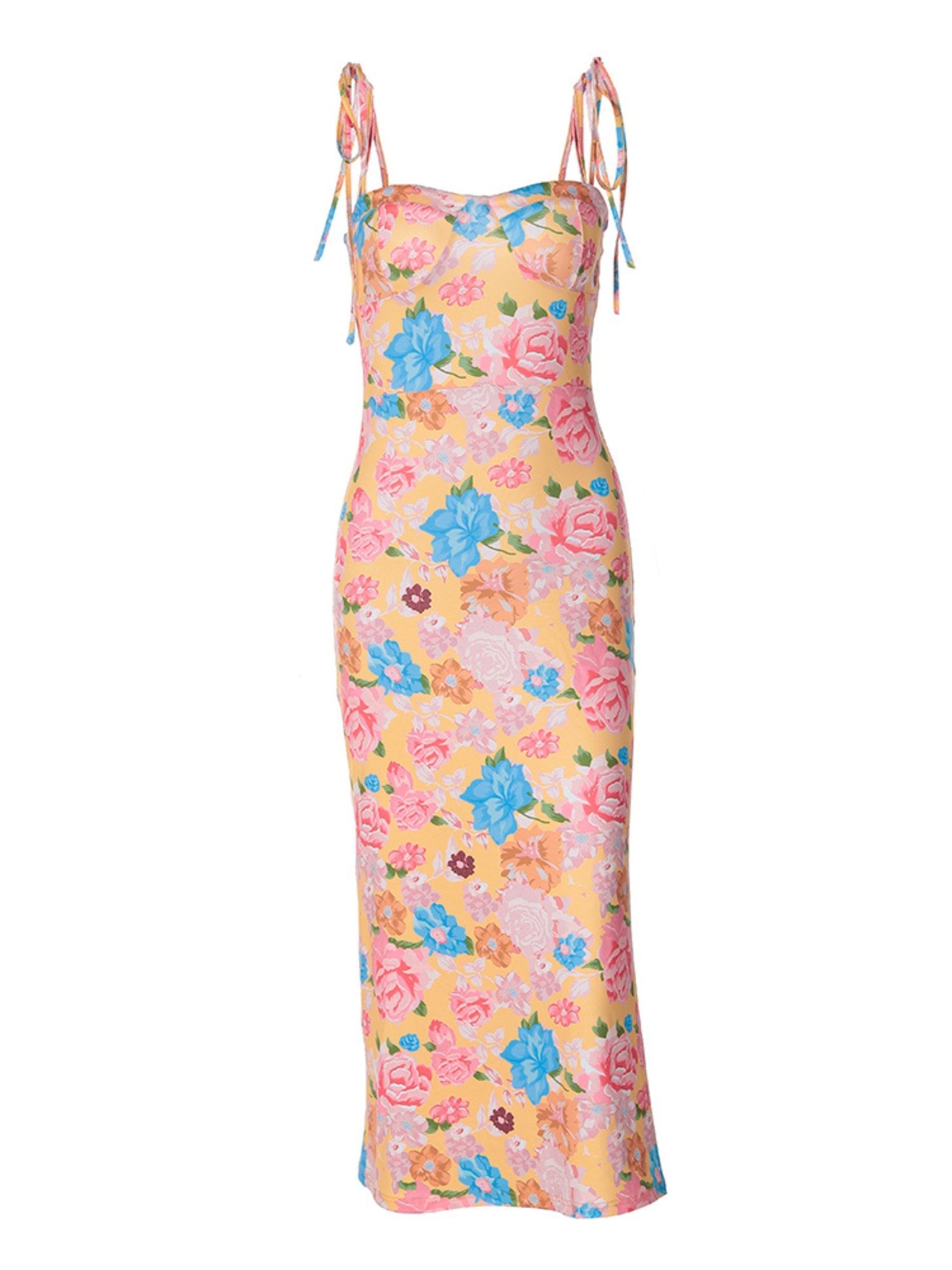 Get ready to twirl in style with our Laiyla Floral Midi Dress! Designed with adjustable shoulder straps for the perfect fit. this dress adds a playful and romantic touch to your wardrobe. The pastel colors and beautiful florals bring out the good girl in you. Perfect for your spring-summer collection!