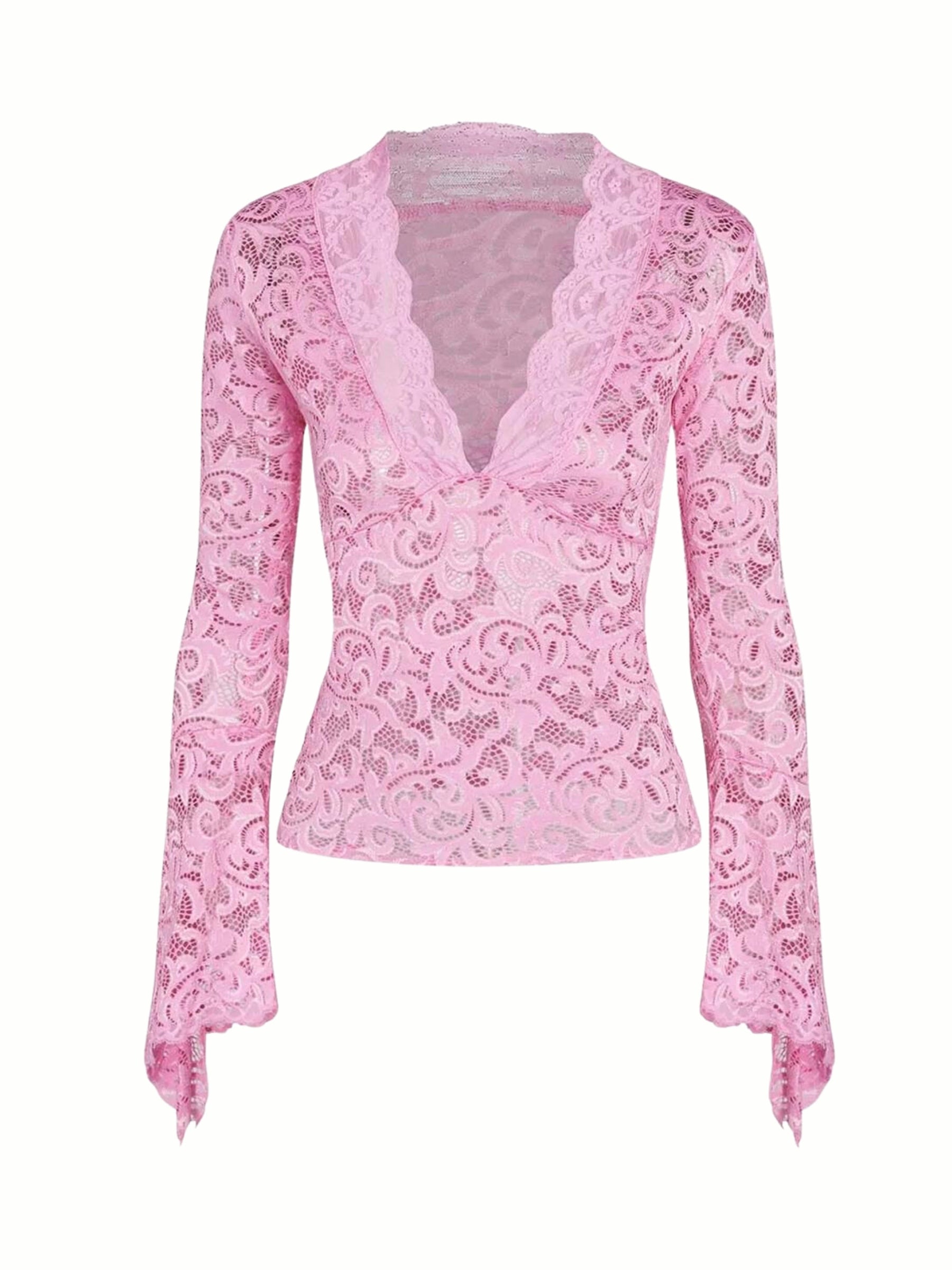 Upgrade your wardrobe with the Giabella Lace Top in Pink. Featuring romantic lace fabric. long lantern sleeves. and a deep V neck—you'll look like a classic beauty from day to night! Flaunt this elegant and sexy top from the 'Izosu' Collection and embrace your inner goddess.