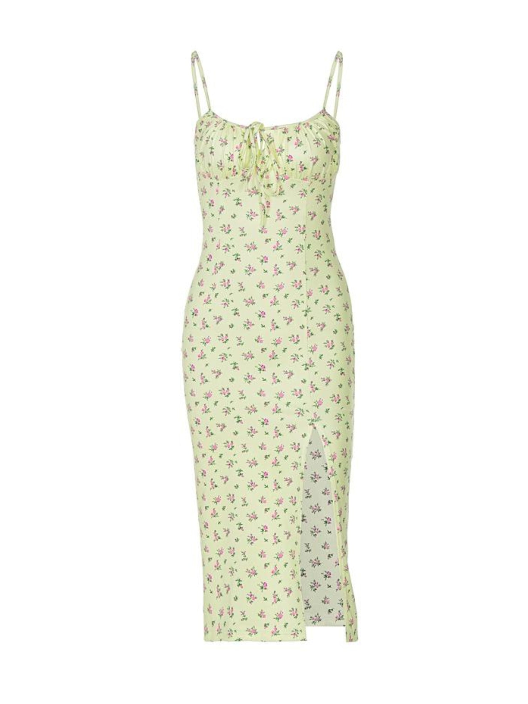 Feel spring in full bloom this summer with our Alena Floral Midi Dress! This sexy. romantic French style dress has a side slit and V-neck for a look that exudes effortless chic. Plus. the drawstring chest detail adds a unique touch that'll keep all eyes on you! Ready to celebrate good times? Good girl. let's go!