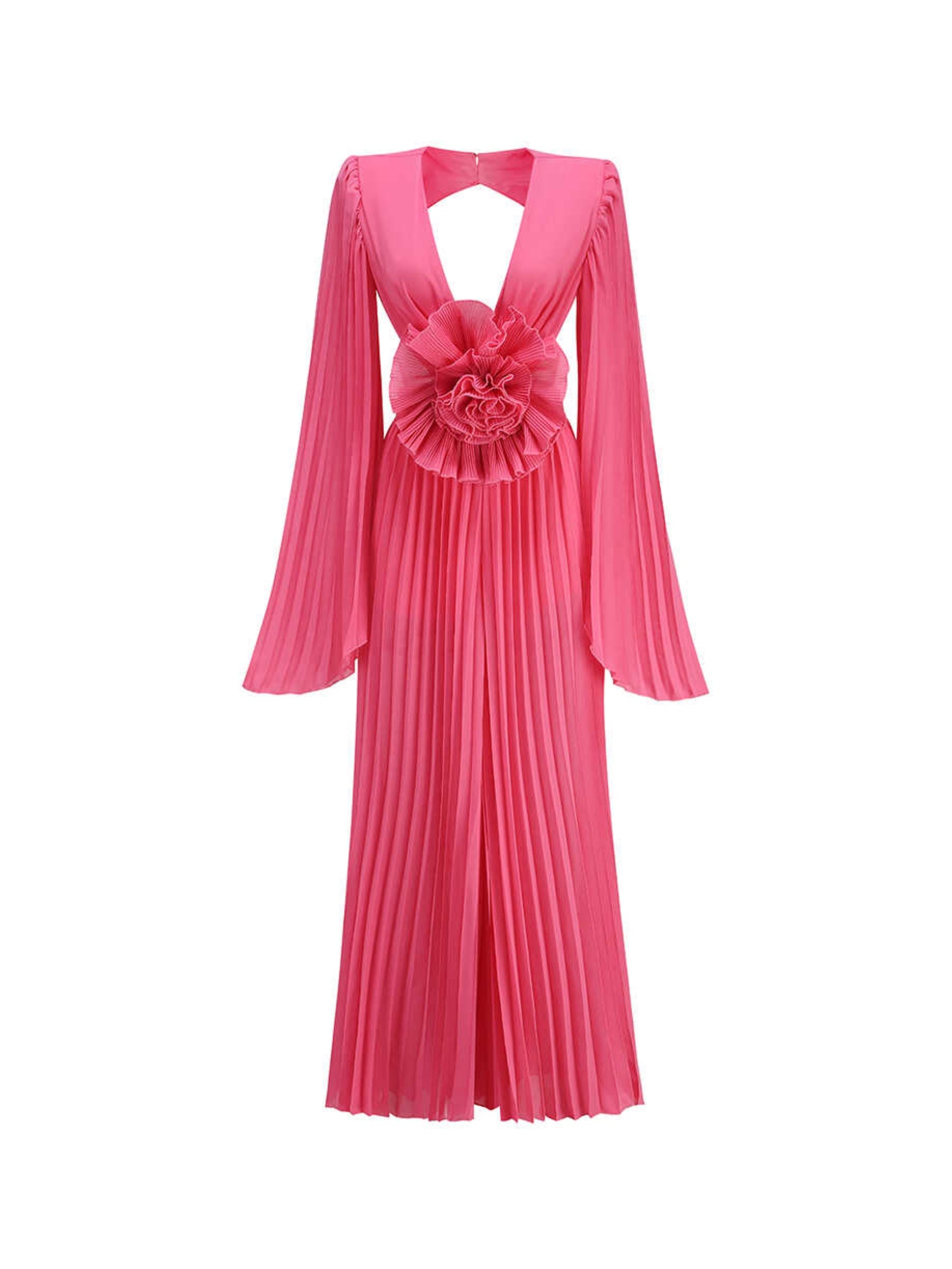 Get ready to bloom in the Dalia Deep Neck Floral Jumpsuit! With its long lantern sleeves and backless design. this jumpsuit will have you feeling flirty and fun. The elastic waist ensures a comfortable fit. while the soft striped fabric adds a touch of femininity. Perfect for any evening occasion from Izosu Evening Collection. Available in Rose Pink.