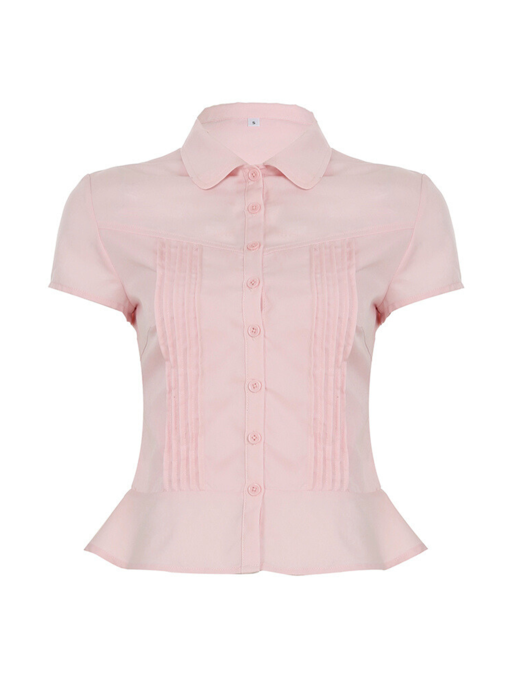 Divina Pinstripe Fitted Shirt is the ultimate blend of sweet and structured. designed to accentuate your waist and elevate your everyday look. Crafted from a soft pink fabric with subtle pin-tuck detailing on the front. this shirt features a flattering fitted silhouette and short sleeves for a feminine touch. The structured collar adds a hint of polish while the slightly flared hem creates a balanced silhouette that's cute and stylish.