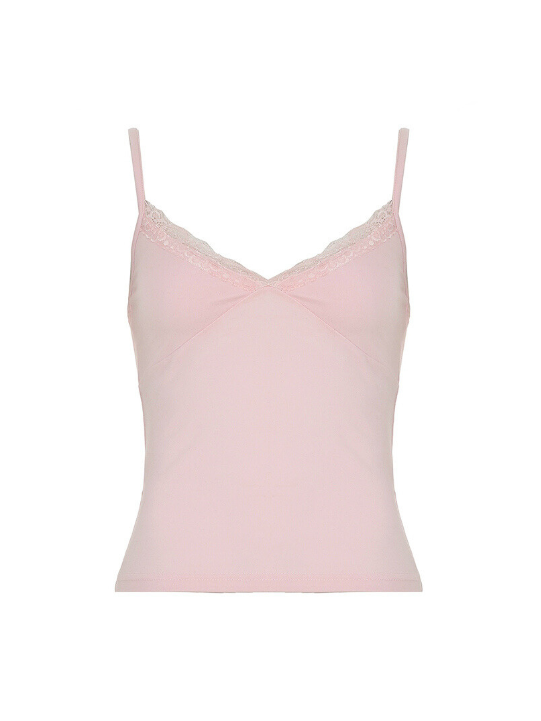 Soft. sweet. and made to flatter—meet the Farah Lace Trim Basic Tank Top. This pastel pink piece features delicate lace detailing along the neckline and slim adjustable straps. giving it a flirty yet minimal look that hugs the body just right. Crafted from a smooth. stretchy fabric. it's the perfect base for layering or wearing solo on sunny days. Pair it with denim for an easy everyday vibe or dress it up with a skirt and heels for a cute night-out fit.