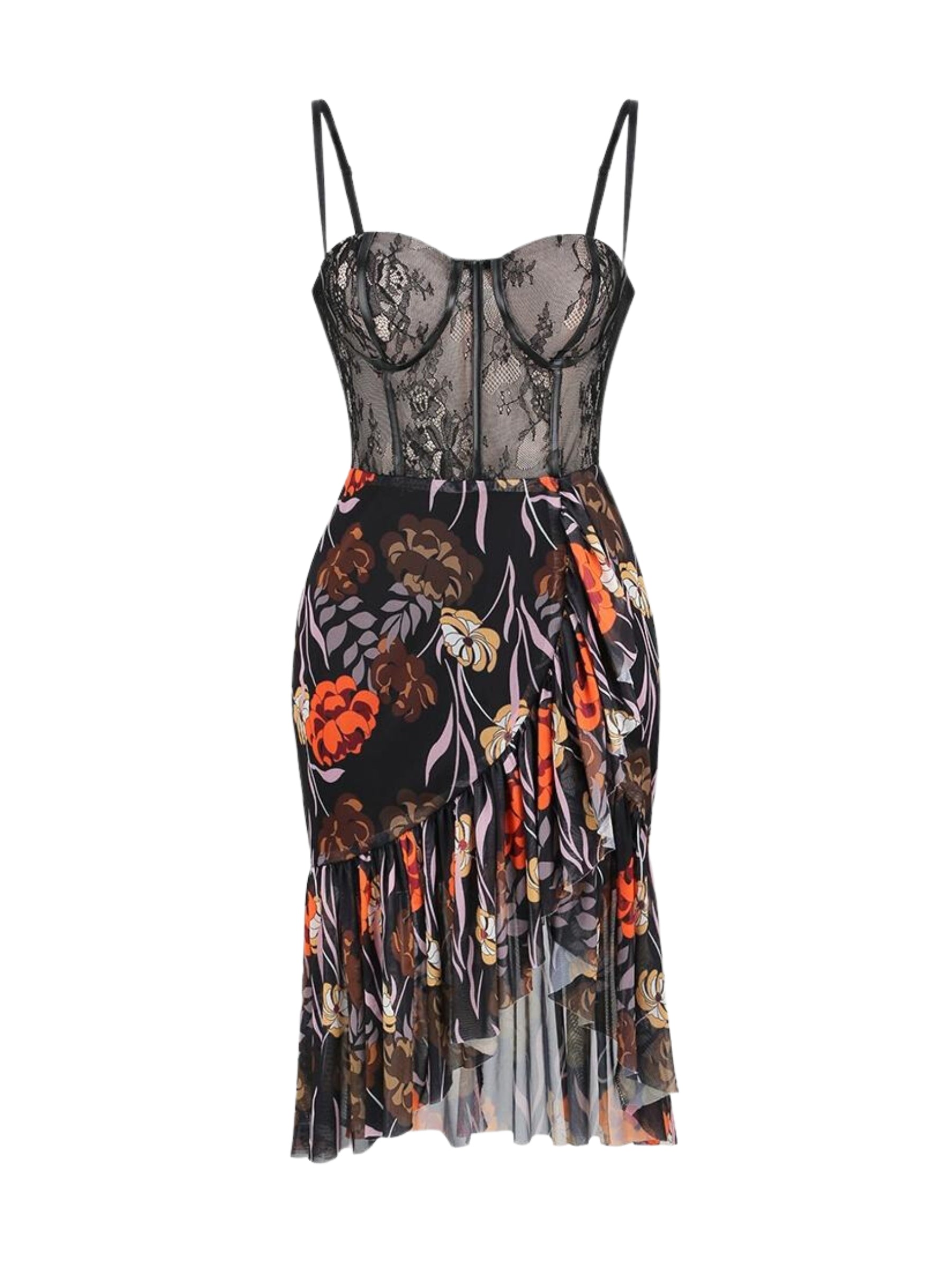Get ready to slay the evening in our Finlay Corset Asymmetric Dress! The mesh corset top adds a daring touch. while the ruffle asymmetric midi skirt brings elegant movement to your look. With its high waist design. this dress is perfect for any occasion - from parties to weddings. From our Izosu Party & Coctail Collection.
