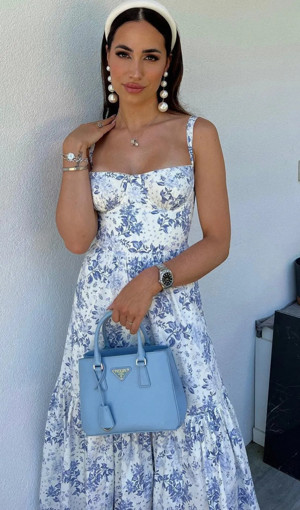FLORAL PRINTED MIDI DRESS IN BLUE