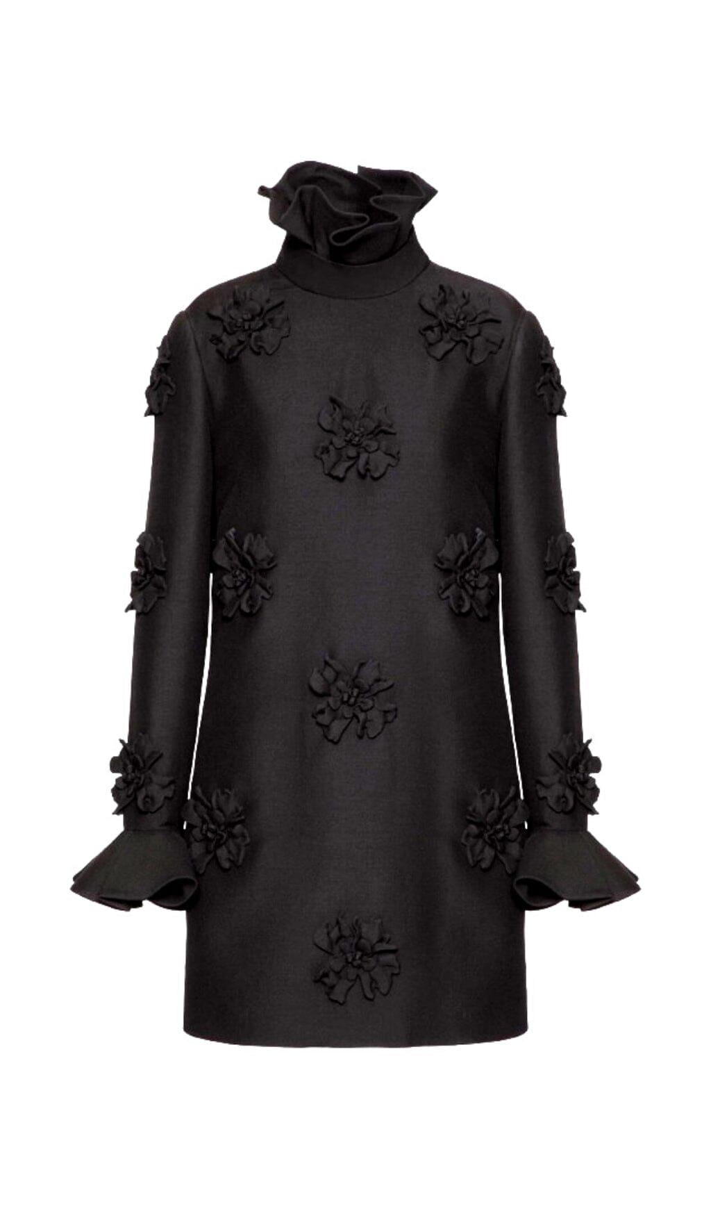 GIANNA STEREO FLOWER RUFFLE MINI DRESS IN BLACK