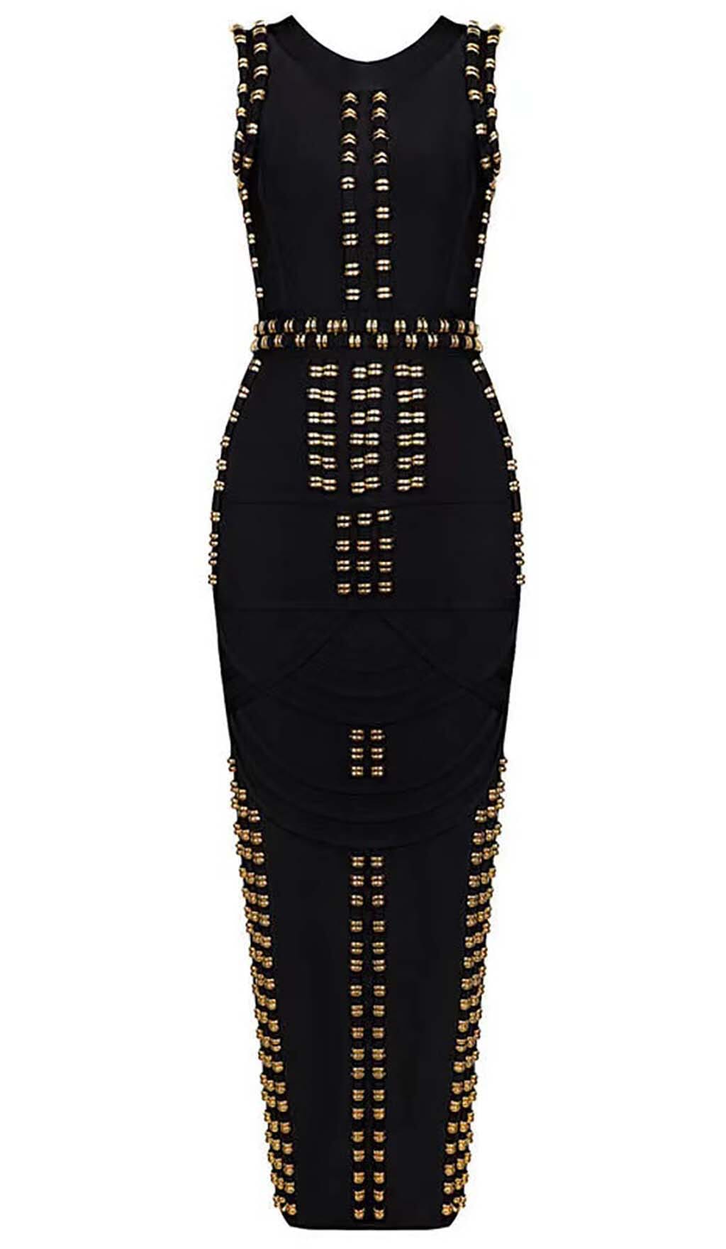 GOLD ACCENT BANDAGE MAXI DRESS