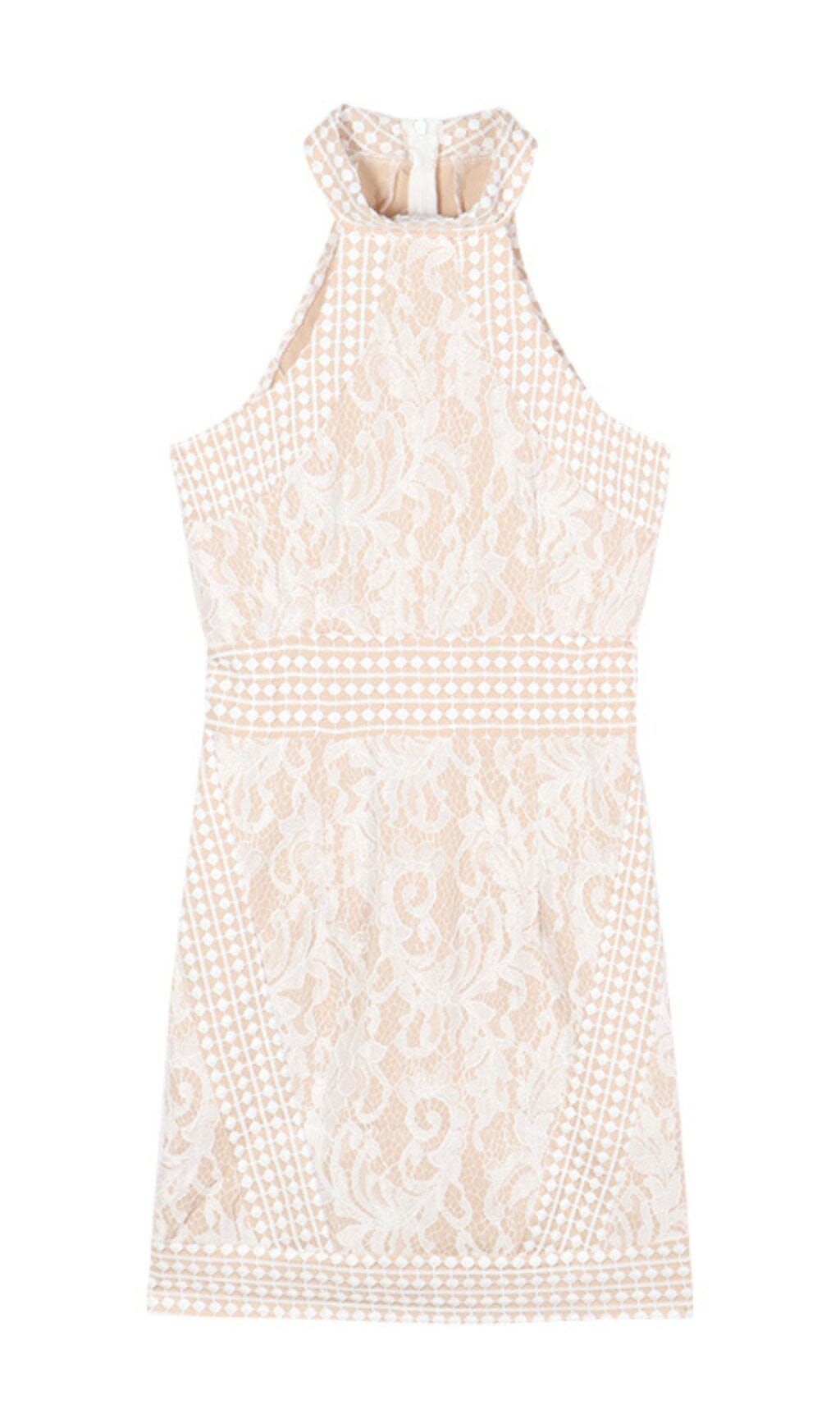 HIGH NECK CROCHET MINI DRESS IN BEIGE