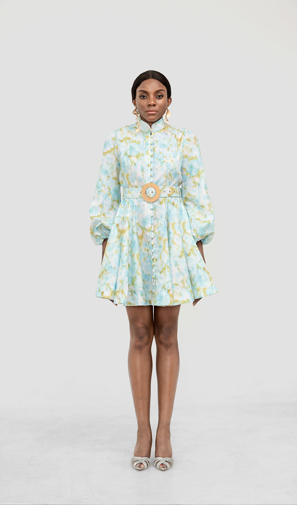 Elevate your style with our Kellee Aqua Floral Long Sleeve Mini Dress. featuring charming lantern sleeves and a flattering belt. This dress is a harmonious blend of elegance and playfulness. adorned with a delightful floral pattern. The lantern sleeves add a touch of whimsy. while the included belt enhances the figure for a chic and versatile look.