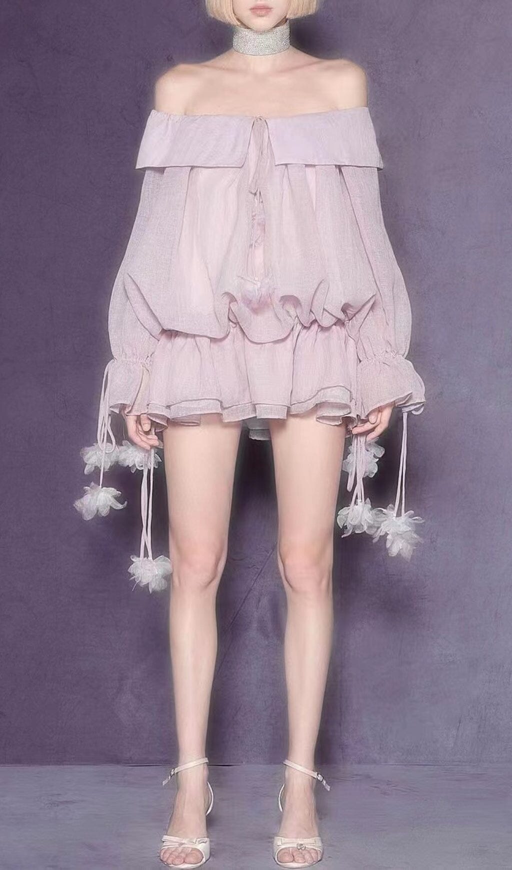 LACE COLD-SHOULDER MINI DRESS IN PURPLE