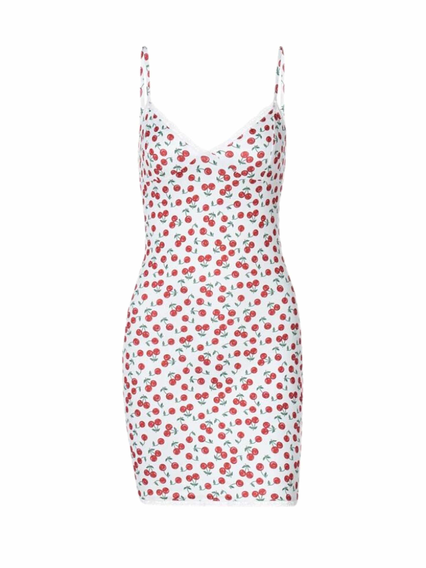 Unleash your sweet and sassy side with the Nadya Cherry Print Mini Dress in White! This sexy. lace-up number hugs your curves in all the right places. and with its playful cherry print design and slim fit. it's sure to be a hit at any occasion. Oh. and don't forget the stylish spaghetti straps. V-neck. and Izosu stamp of approval �you'll be a bloomin' cutie!
