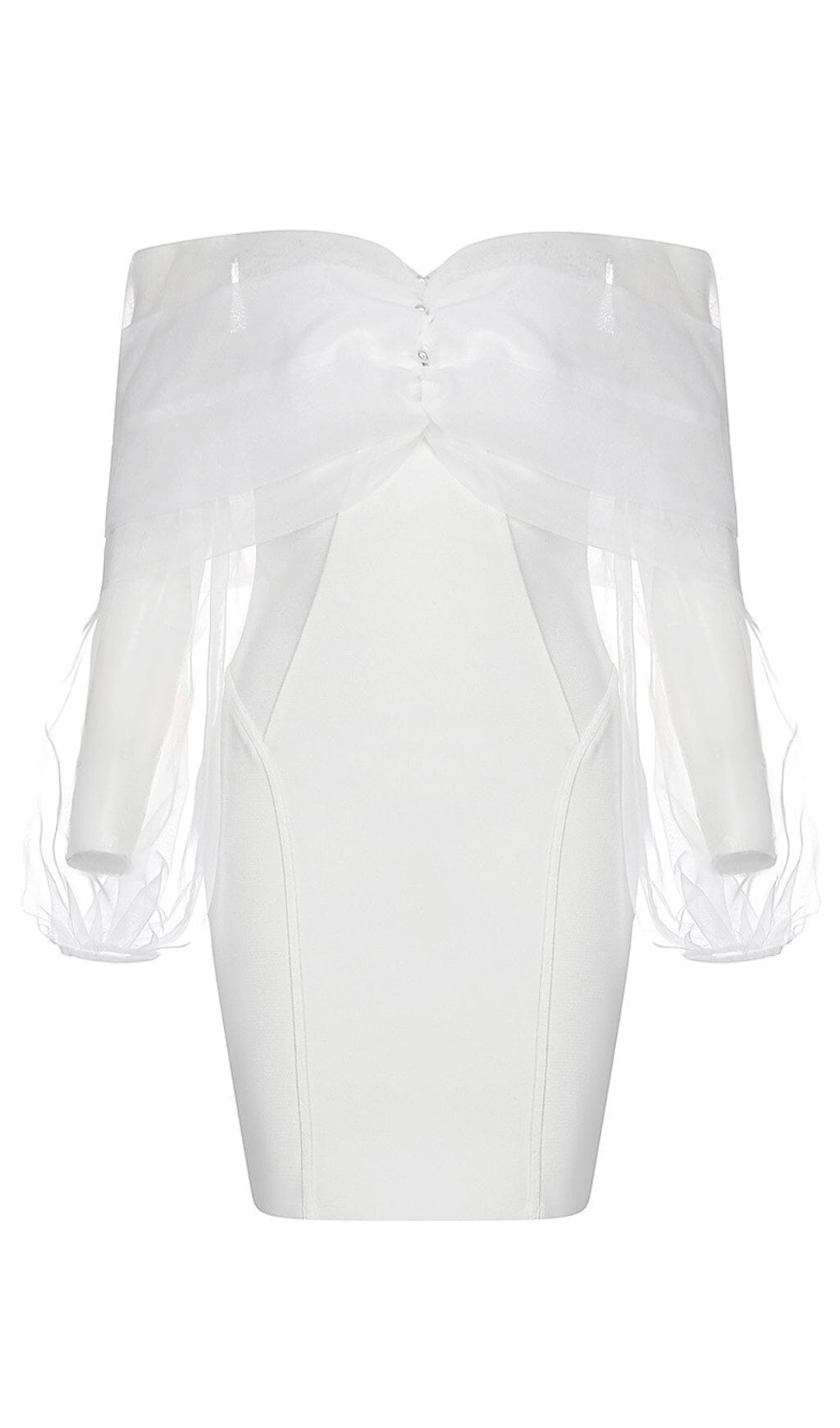 ONE-LINE SHOULDER-TOP TULLE DRESS IN WHITE