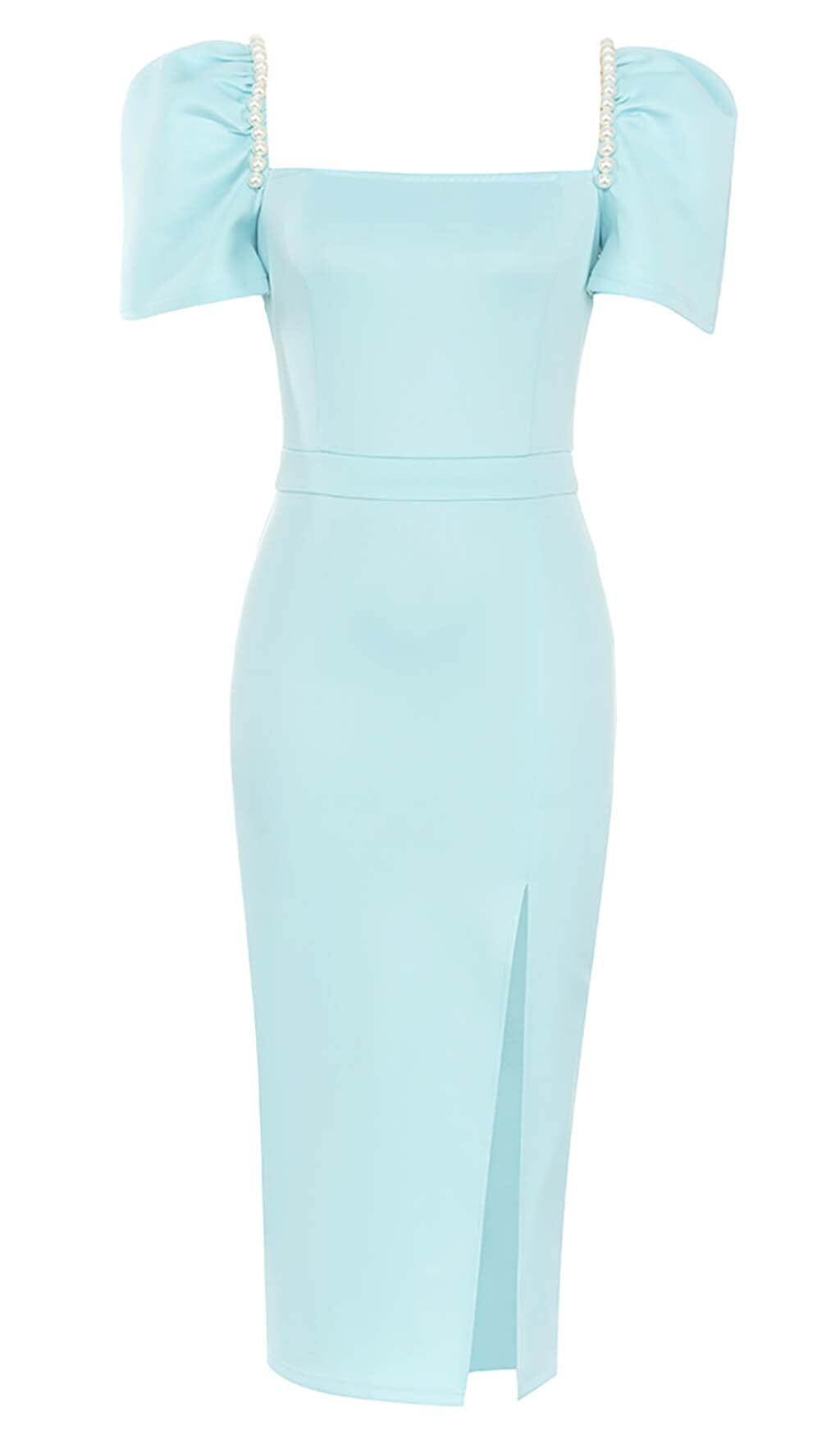 Dainty and Playful. Our Puff Sleeve Pearl Midi Dress Is Perfect for Any Springtime Occasion. It Features Delicate Pearl Detailing on the Sleeves for a Touch of Glamour. The Fitted Bodice and Midi Length Skirt Make This Dress Flattering and Easy to Wear. Whilst the Puff Sleeves Add a Feminine Touch. Simply Style With Heels and a Clutch Bag for a Pretty Springtime Look.