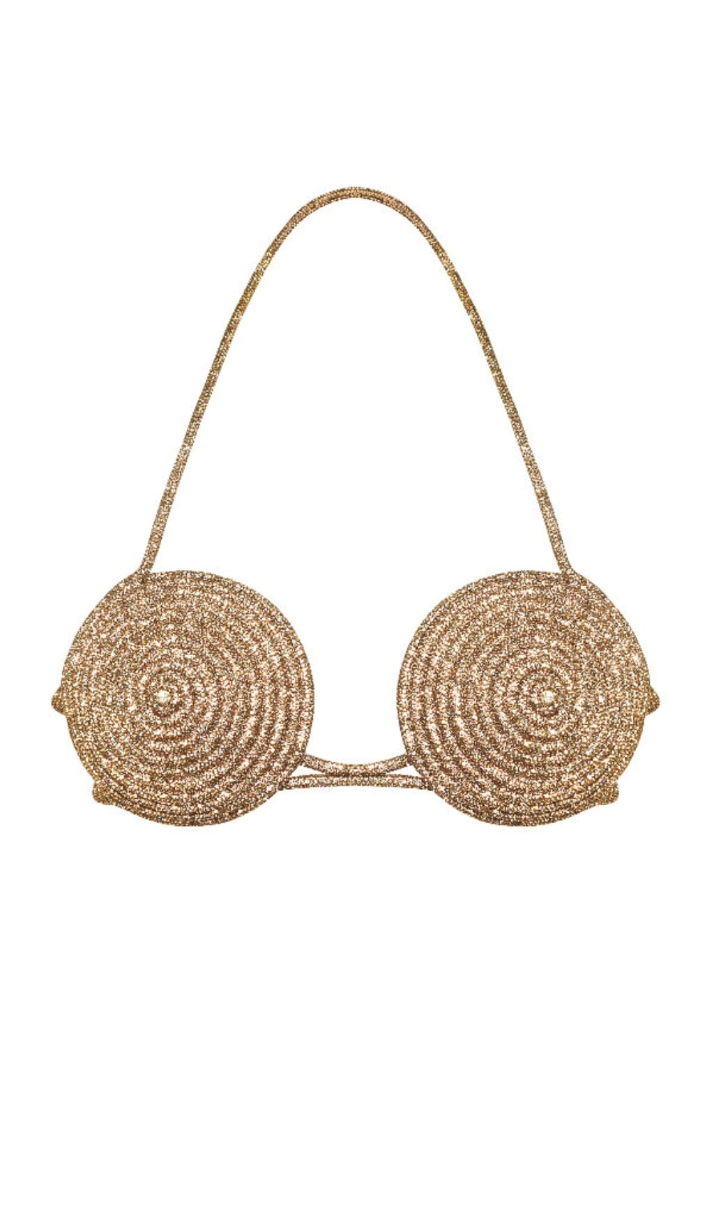 RHINESTONE EMBELLISHED SILK BRA TOP IN GOLD