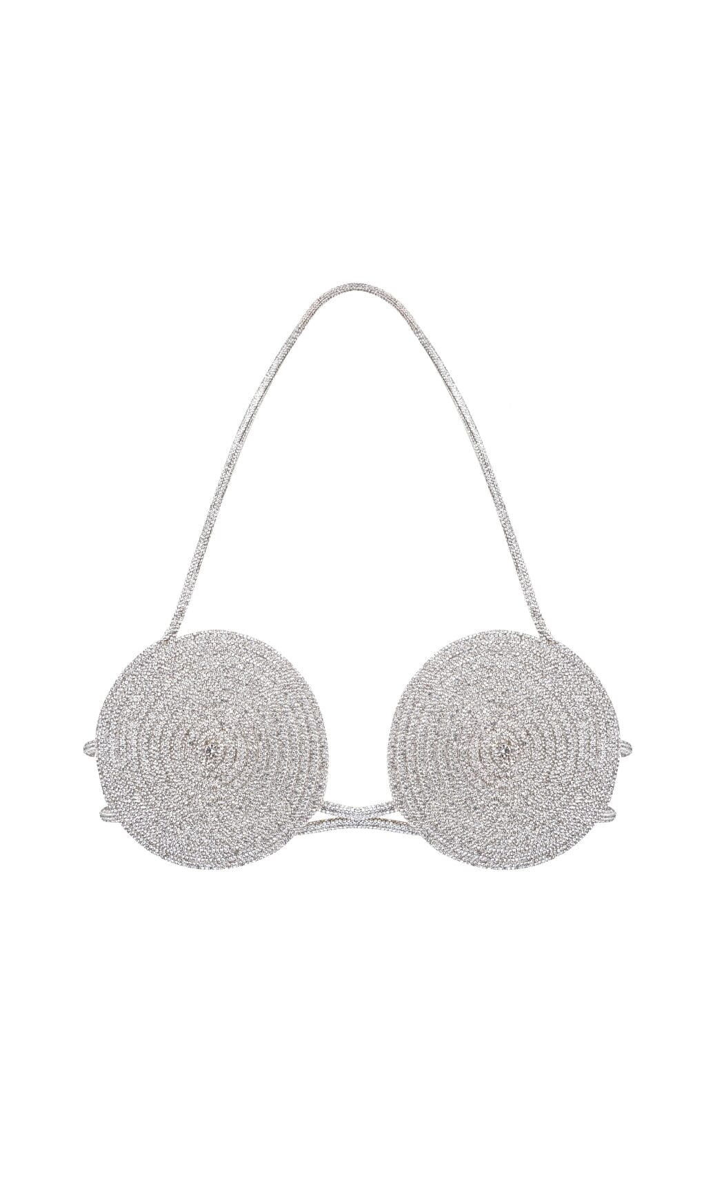 A glamorous statement piece. the sliver bra top is crafted from silk that's delicately covered with spiral rhinestone embellishments. The silk-satin lining guarantees effortless wear. Hook and eye fastening at back.
