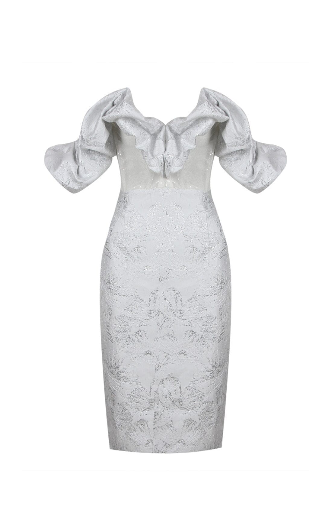 RUFFLE CORSET MIDI DRESS IN WHITE