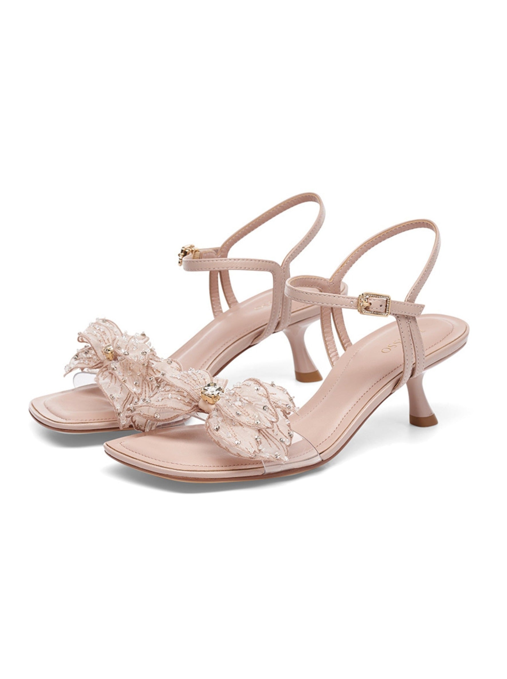 Step into the whimsical world of the Izosu Shoes & Bags Collection with the Samora Bow Sandals in Pink. Designed with elegant and romantic touches. these fairy sandals feature a hand-sewn butterfly bow embellished with sparkling crystal diamonds. Made with soft sheep leather and a comfortable kitten heel. these square-toed sandals are perfect for good girls who dare to be bold.