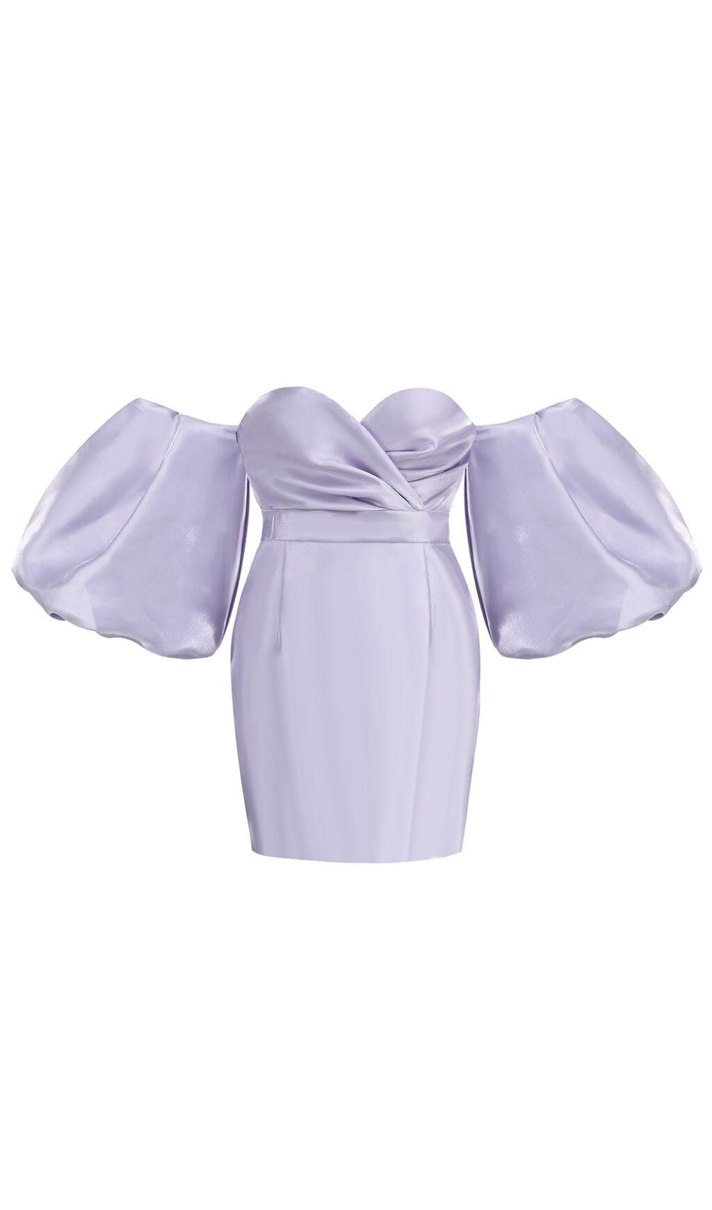 SATIN PUFF SLEEVE MINI DRESS IN LIGHT PURPLE