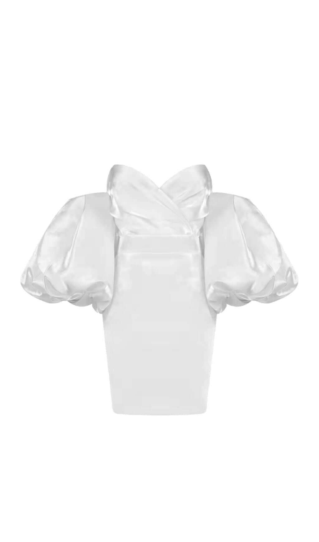 SATIN PUFF SLEEVE MINI DRESS IN WHITE