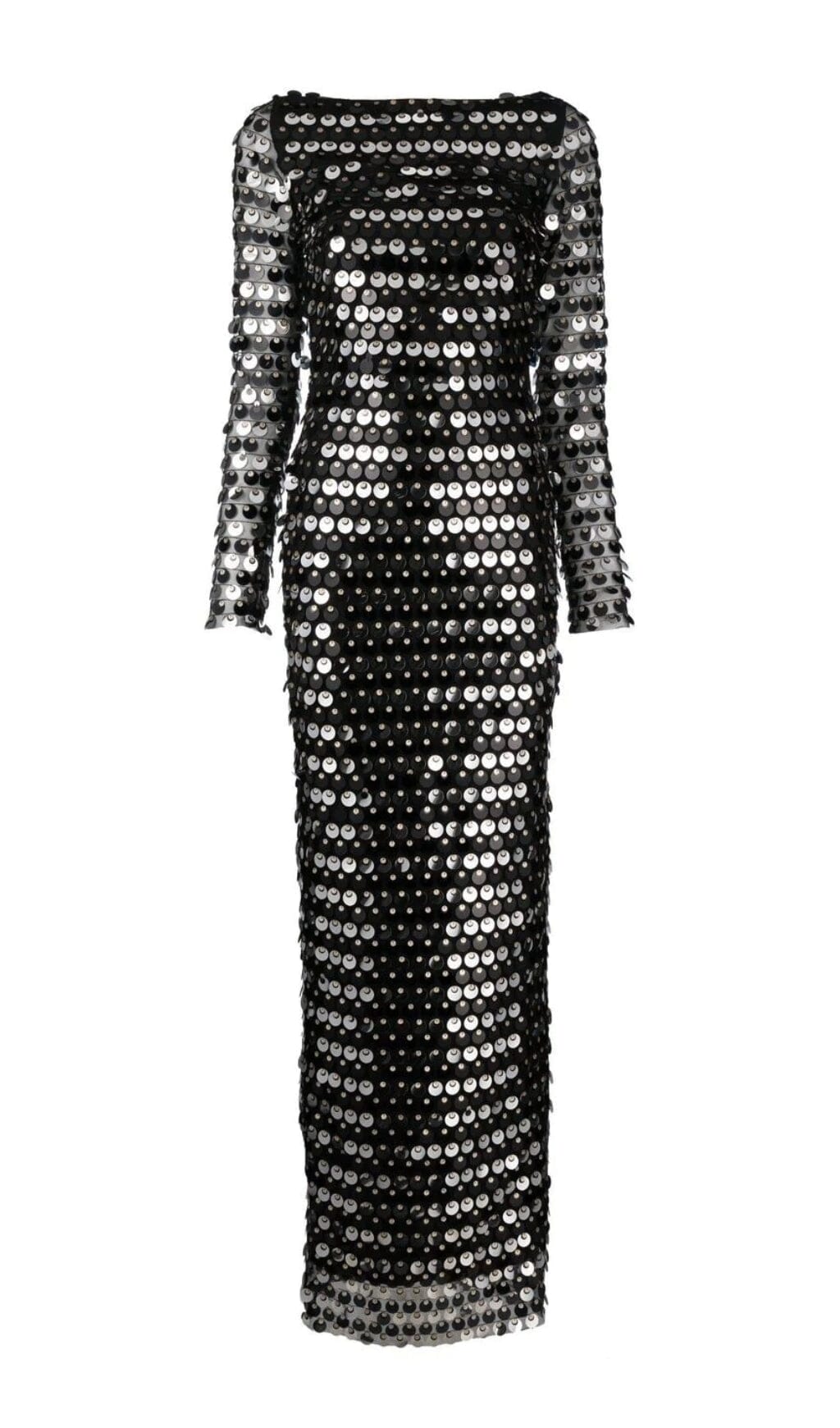 SEQUIN LONG SLEEVE MAXI DRESS IN BLACK