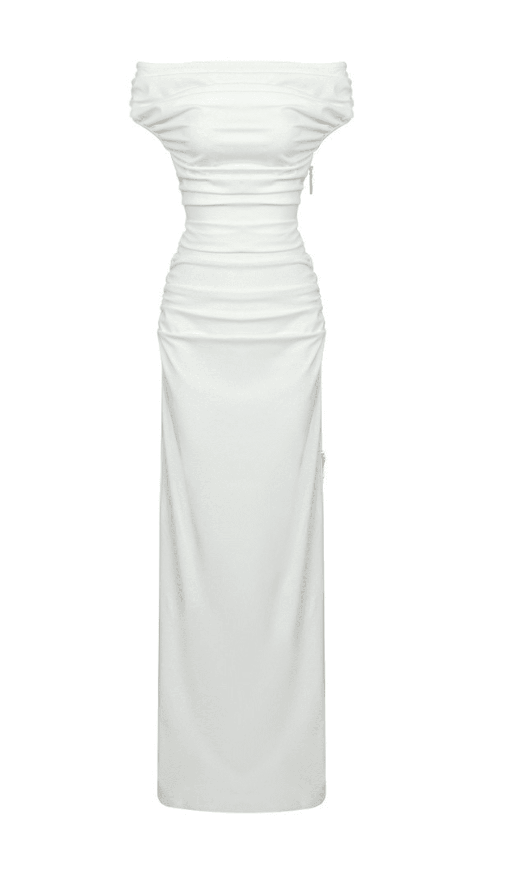 SLASH NECK PLEATED MAXI DRESS IN WHITE