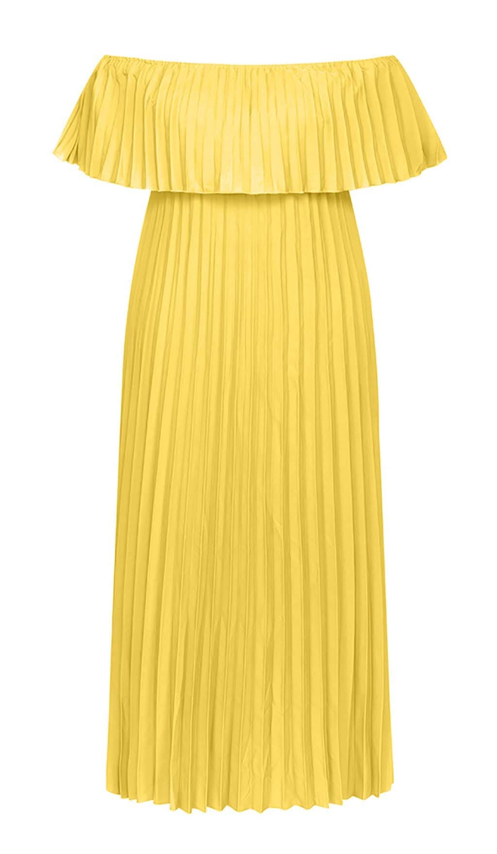 STRAPLESS PLEATED MAXI DRESS IN YELLOW