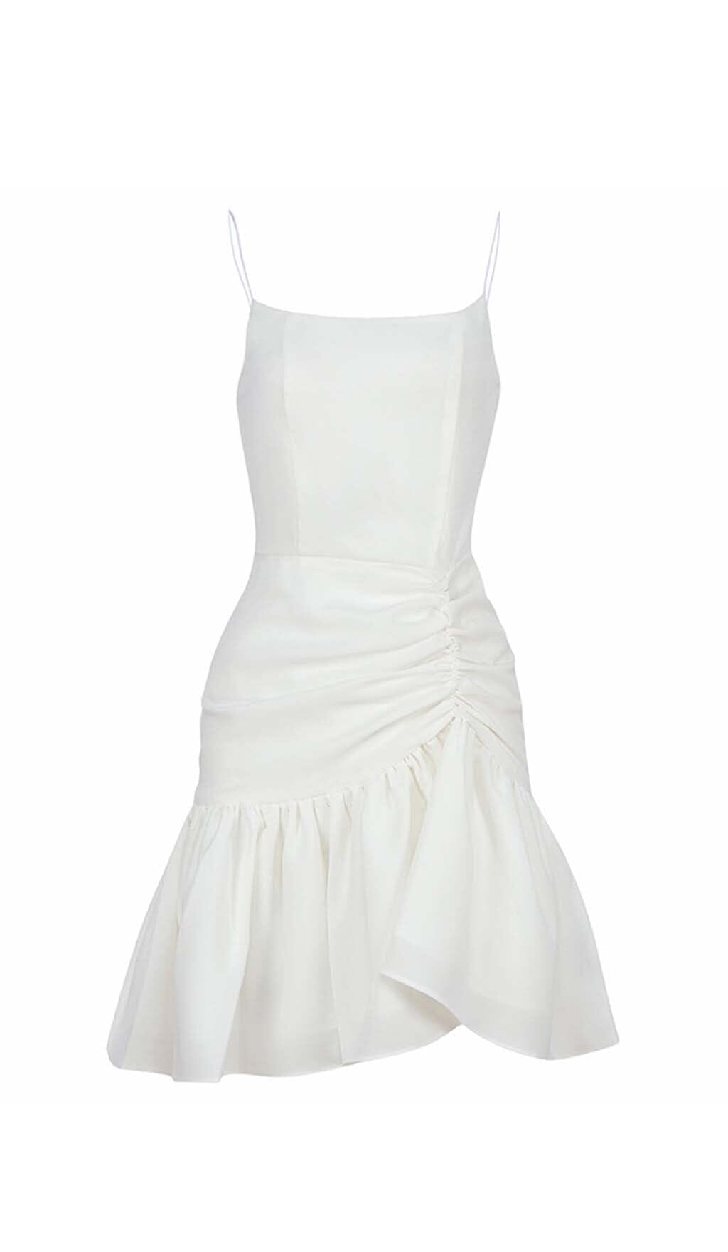 This Strappy Ruffle Mini Dress is the perfect summer piece! The light white fabric is cool and refreshing. and the adorable ruffles add a touch of fun. The dress is strappy. so it will show off your tan! The mini length is perfect for showing off your legs.
