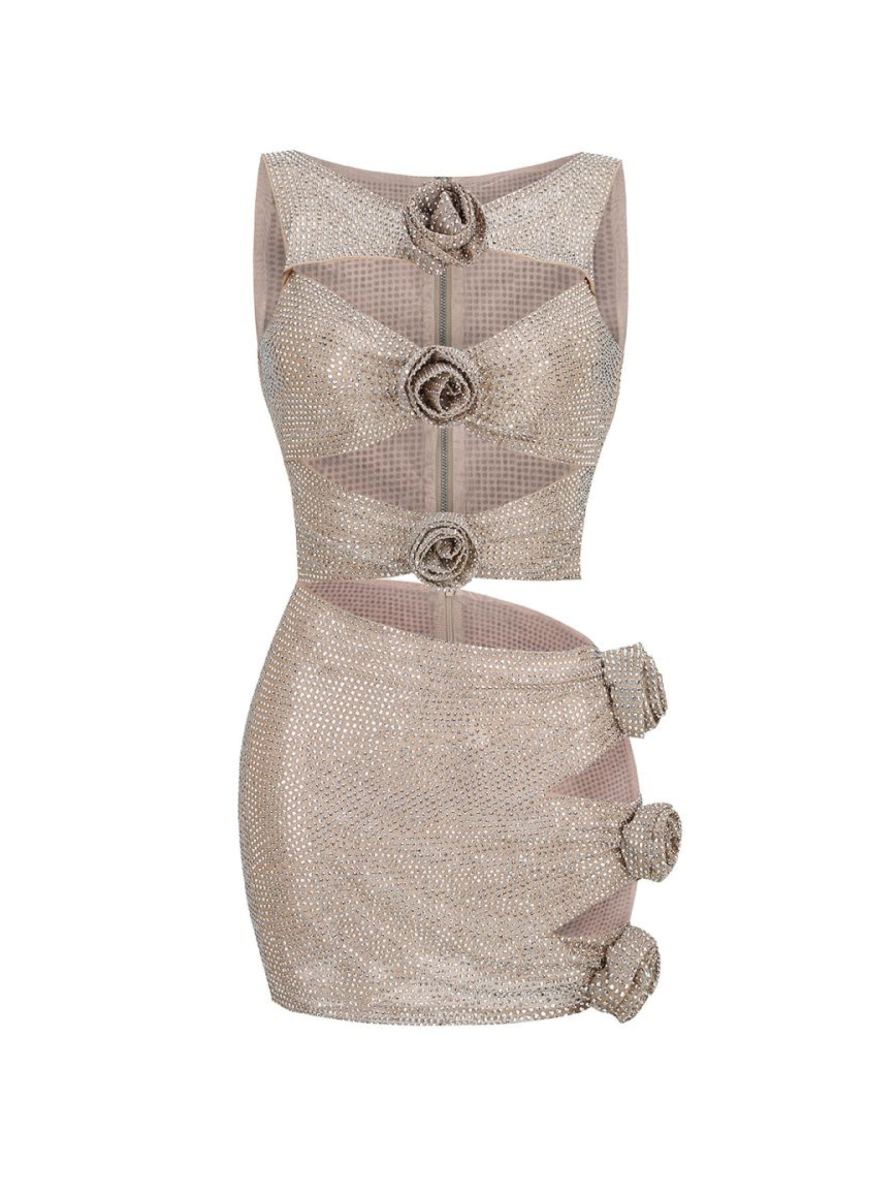 The Vanesa Embroidery Skirt Set in Hot Pink is a two piece outfit that is both sexy and stylish. The sleeveless top features a unique hollow cut design and crystal embroidery. while the elastic waist mini skirt provides both comfort and a flattering fit. Perfect for any occasion. this set is part of the Izosu Evening Dresses Collection.