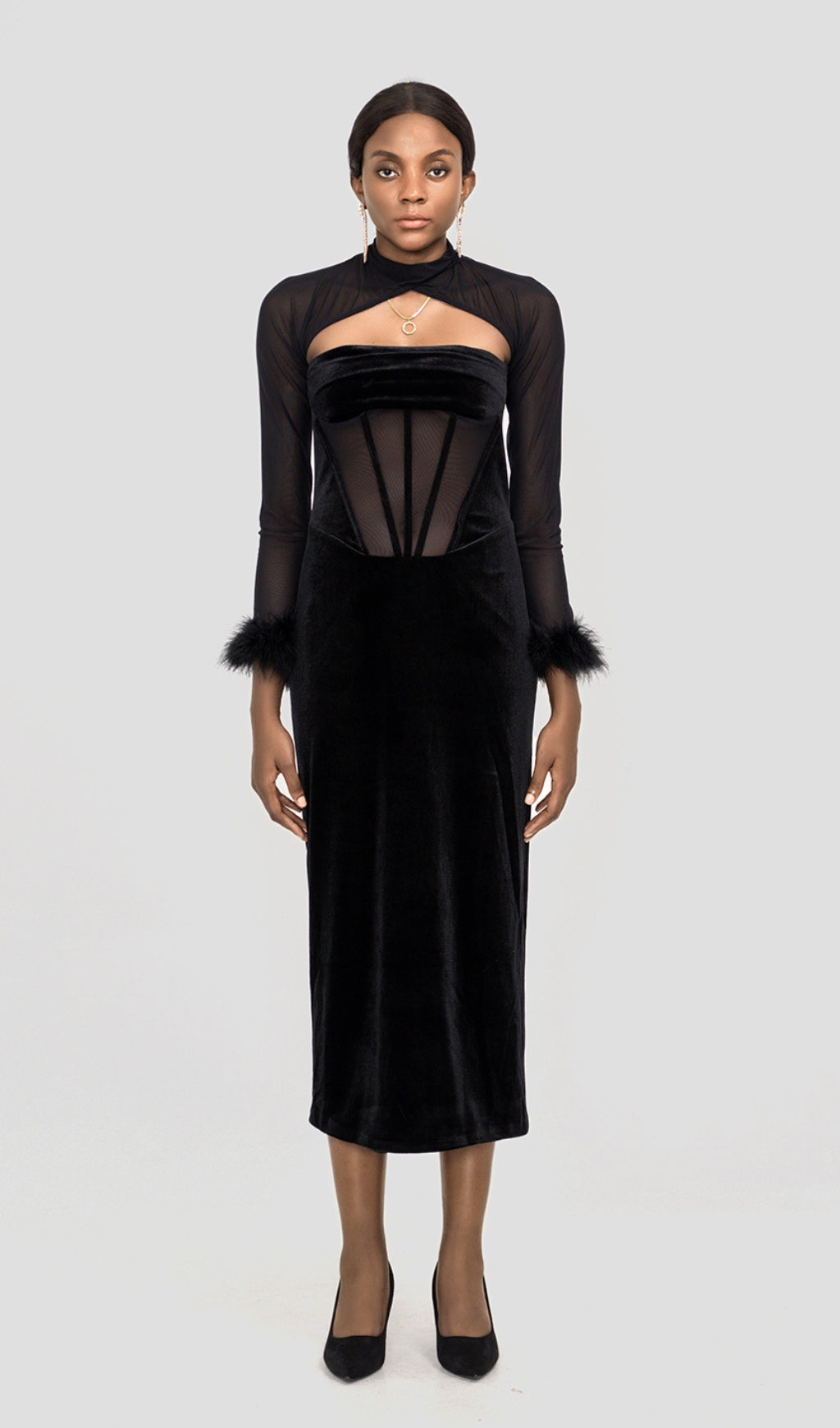 Look and feel beautiful in this velvet corset maxi dress. Crafted from a luxurious black velvet fabric. this dress features a corset bodice for a figure-hugging fit and a long skirt for a dramatic look. Enjoy a night of luxury and sophistication in this gorgeous maxi dress.