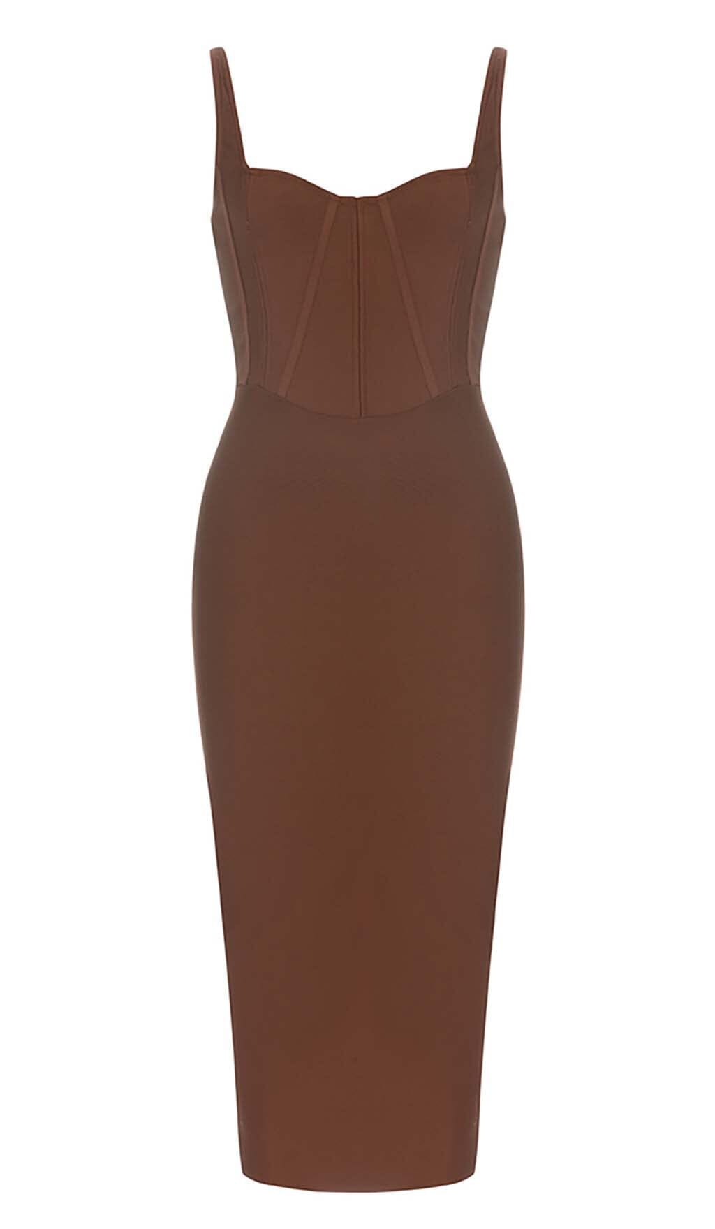 Make a bold fashion statement with our Waist-Tightening Corset Midi Dress in Brown! This dress is a perfect blend of vintage allure and modern sophistication. The corset-style waist-tightening feature enhances your figure. creating an hourglass silhouette that's both flattering and stylish. The midi length adds an element of classic elegance. while the rich brown color brings a warm and earthy touch to your look. Whether you're heading to a business meeting. a dinner party. or a chic city outing. this dress is your perfect companion. So. slip into this dress. and let your style speak volumes about your unique fashion sense!