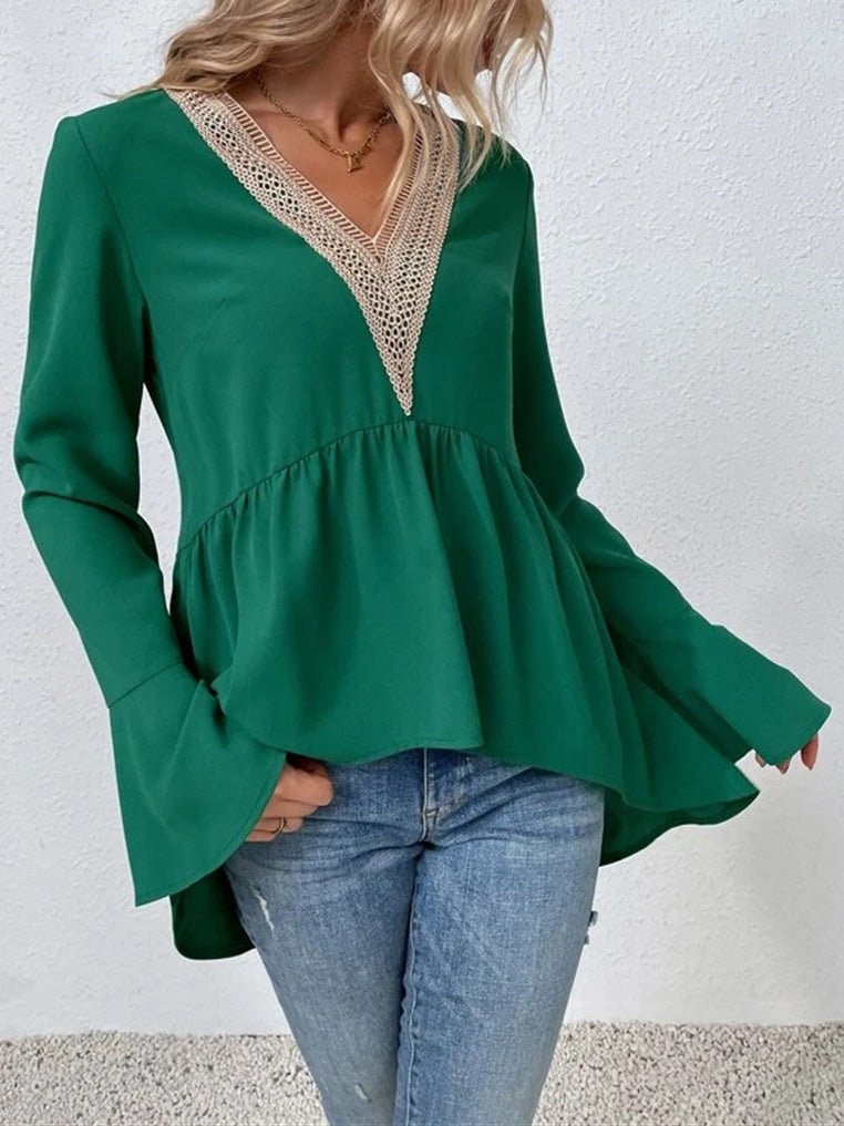 Lace Panel Flare Sleeve Blouse