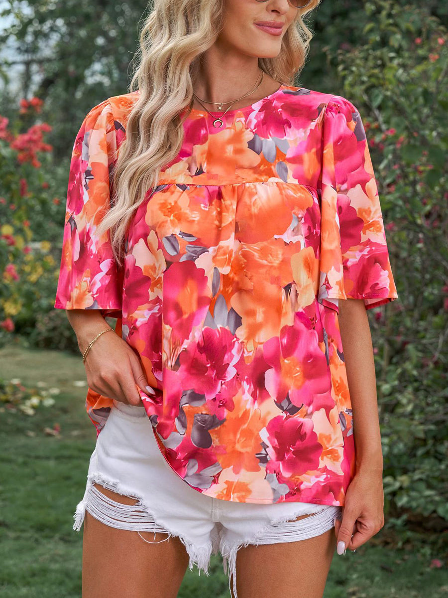 Enhance your wardrobe with this stylish Women's T-Shirt. Featuring a floral print. loose fit and short sleeve design. this fashion-forward item is sure to be the perfect addition to your casual look.